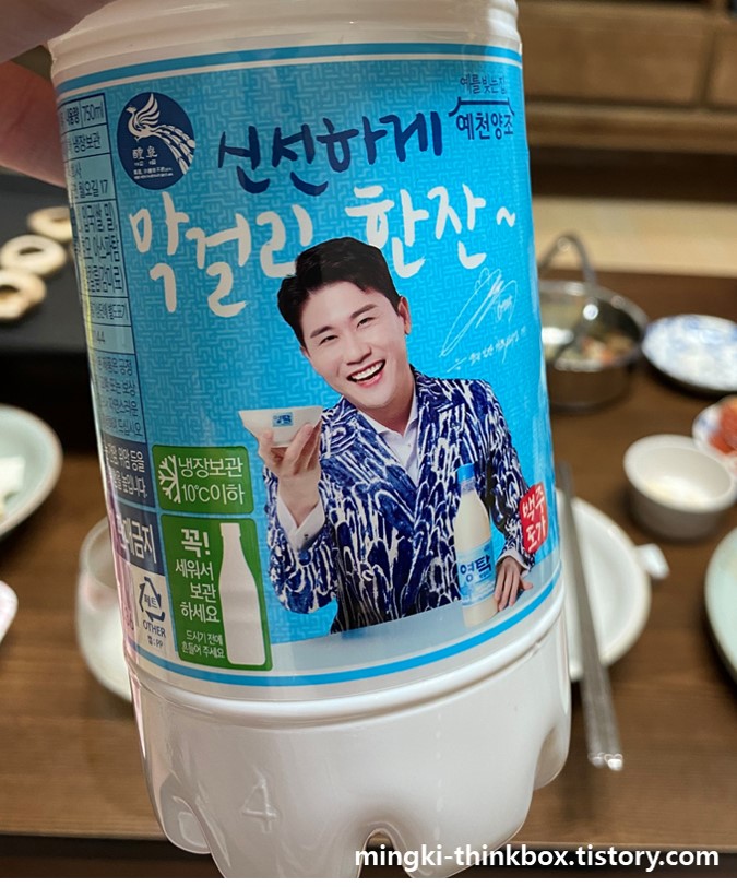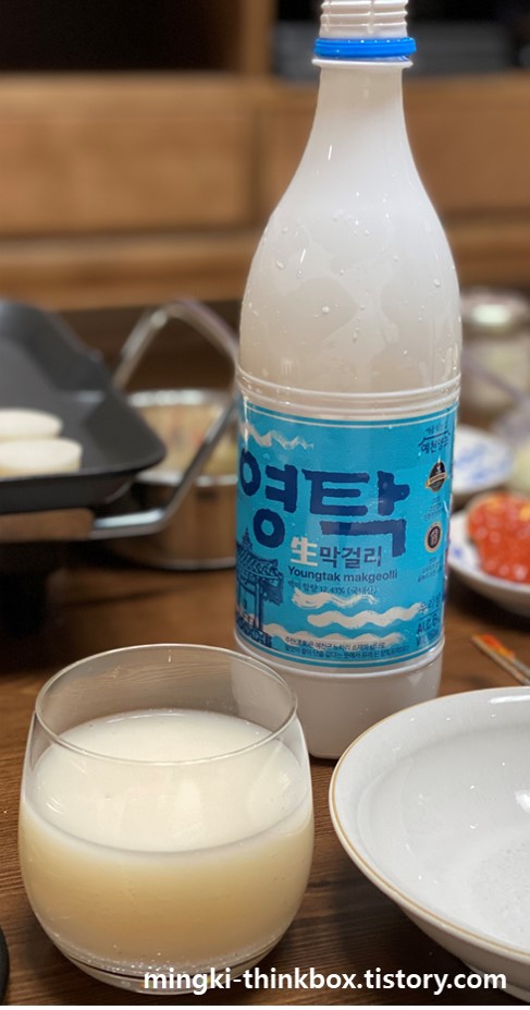 앞서 말했던 시큼한 맛은, 그 맛이 강하지 않고 약하게 올라옵니다. 그 약한 시큼함이 오히려 감칠맛 역할을 해줘서 영탁 막걸리를 계속 마시고 싶게 만들어 주는 것 같았어요.